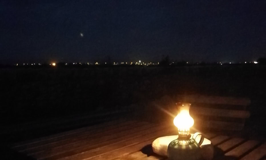 Nel silenzio risalta il frinire dei grilli, l’abbaiare di cani lontanissimi ed i versi degli uccelli notturni dal bosco confinante e qualche timidissima lucciola…