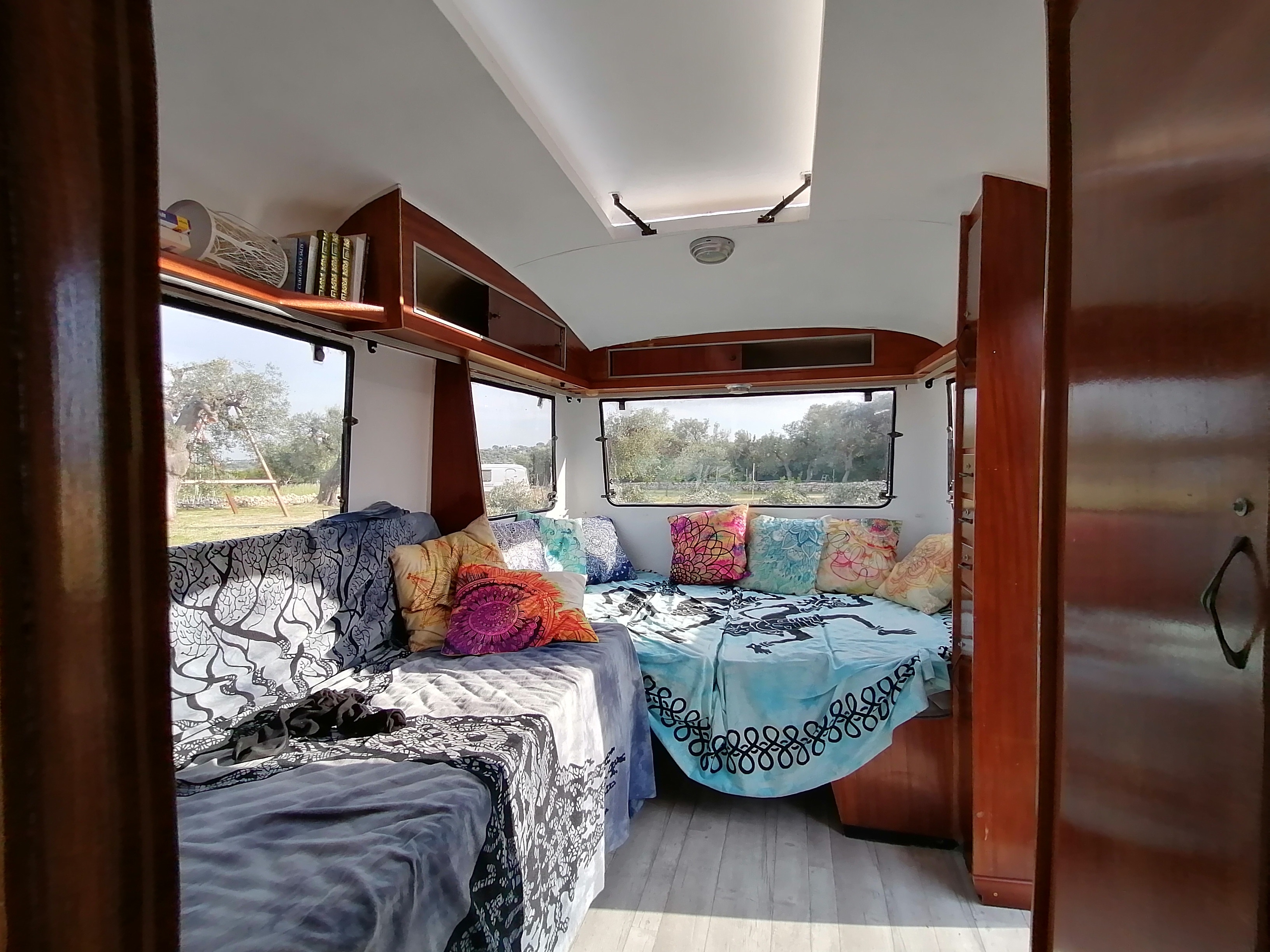 L’accoglienza è disponibile per van, tende, e spazi in roulotte vintage. I servizi sono all’area aperta, c’è acqua di cisterna, doccia esterna, barbecue, sedute, sdraio, tavoli, poltrone, lettini, amaca, altalena, possibilità di falò e BBQ.